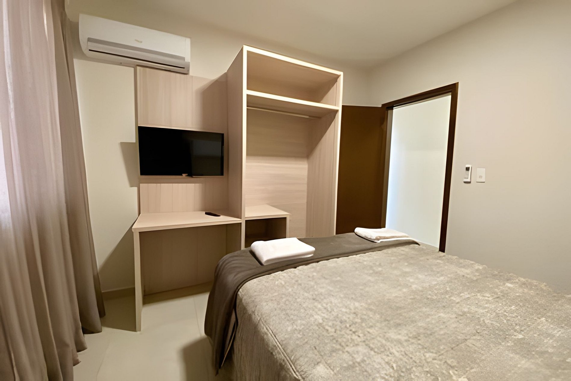 Hospede-se com conforto em um espaço amplo e moderno! Sala de TV, Wi-Fi, lavanderia e cozinha equipada com tudo que você precisa. Localização privilegiada: padaria, mercado e restaurantes a poucos passos, e apenas 500m da Ponte da Amizade. O equilíbrio perfeito entre praticidade e aconchego em Foz do Iguaçu.